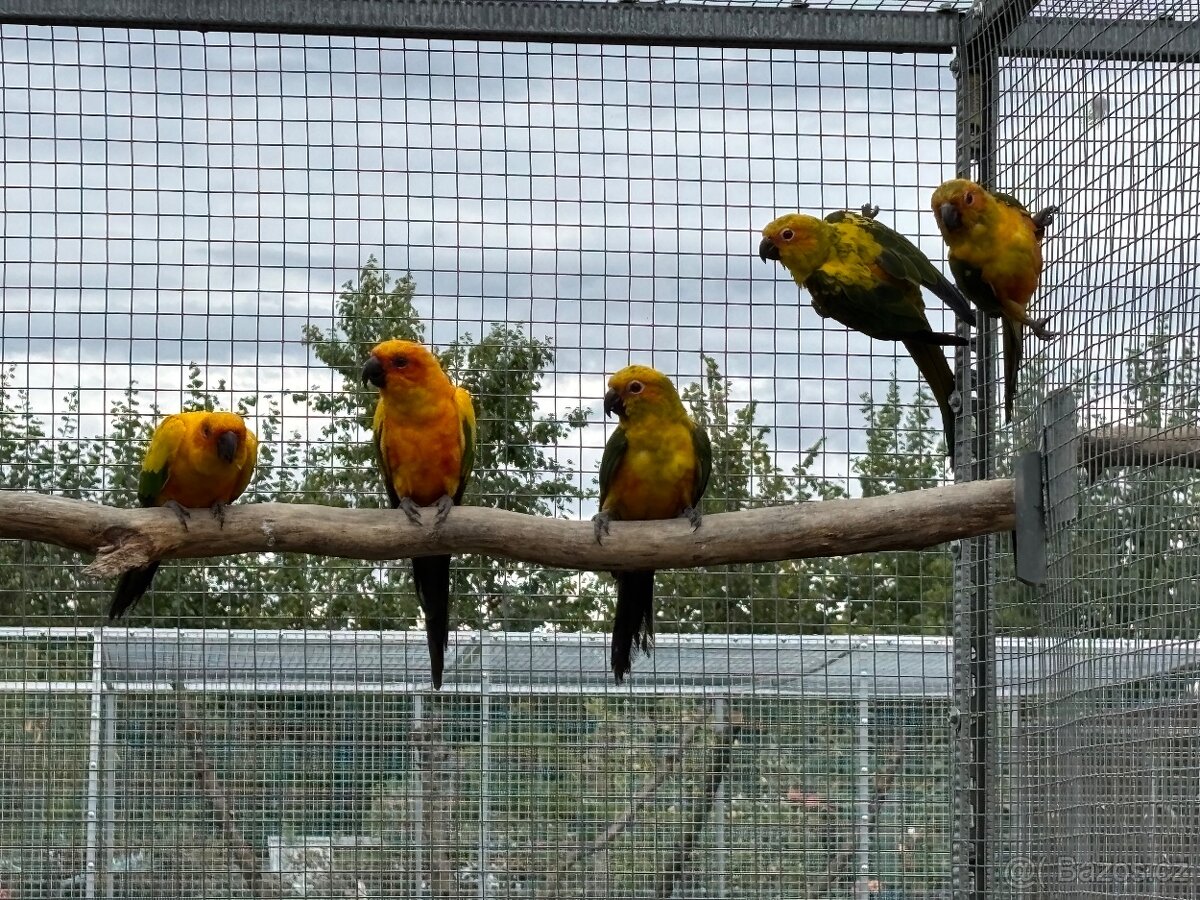aratinga sluneční - [28.12. 2025]Nabízím letošní samostatné kroužkované aratingy sluneční jak do chovu tak jako mazlíčky do bytu nebo voliéry . Odchované pod rodičmi ve voliérách se zálety .