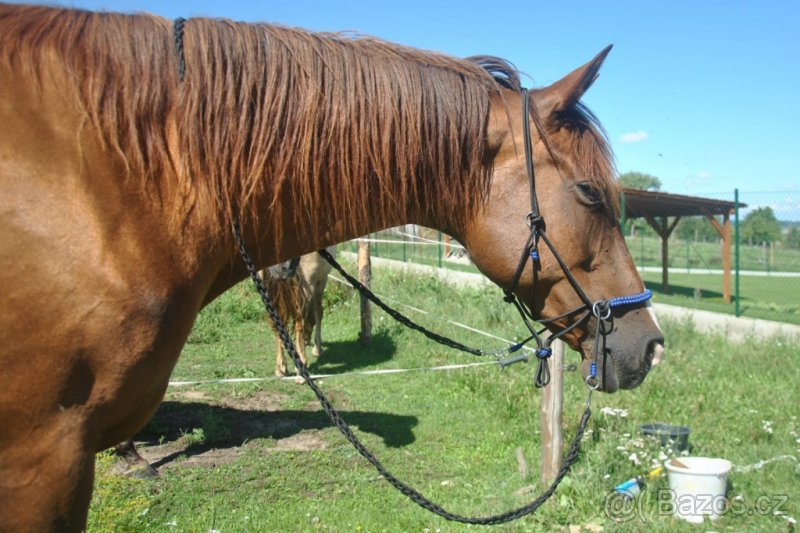 - Výcviková ohlávka - výborná na ježdění, nepřetáčí se, není stahovací. Cena - bez opletu 200 Kč, s opletem 250 Kč