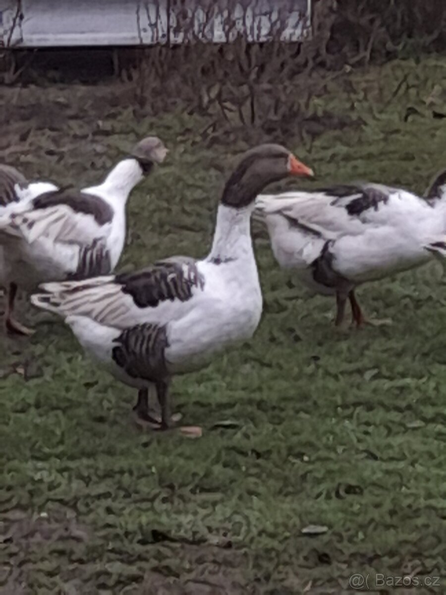 Husa pomořanská - [10.11. 2025]Prodám dvě chovné husy stáří 4 roky a jedno letošní house vylíhnuté v květnu. Cena 1000 kč kus.