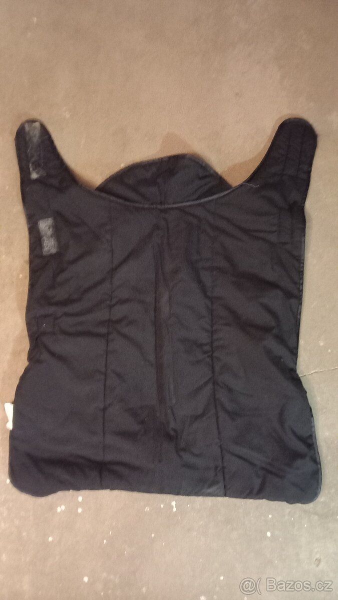 zimní obleček černý na pejska, délka oblečku 70 cm + límeček, šíře oblečku 66 cm. Vzadu jsou návleky na nohy, vepředu zapínání pod krk šála, nahoře límeček a přes bříško pásek na suchý zip. U nás použito asi 3x...