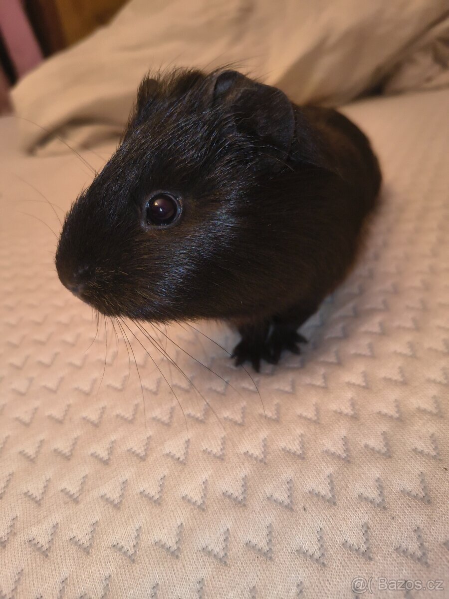 Darujeme černého samečka morčete z našeho chovu jménem Sirius Black. :) Narozen *1/2025.