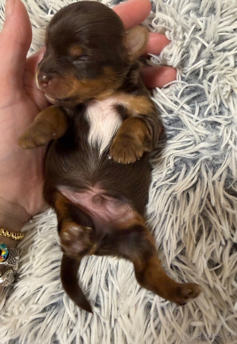 Jorkšírsky teriér s PP fenka Choco tan - čokoláda s pálením - [20.12. 2025]Jsme malá Rodinná chovatelská stanice Princess ‘Daisy dear JesMin. Nabízíme k prodeji miminka z dvou vrhů Yorkshire terrier s PP.