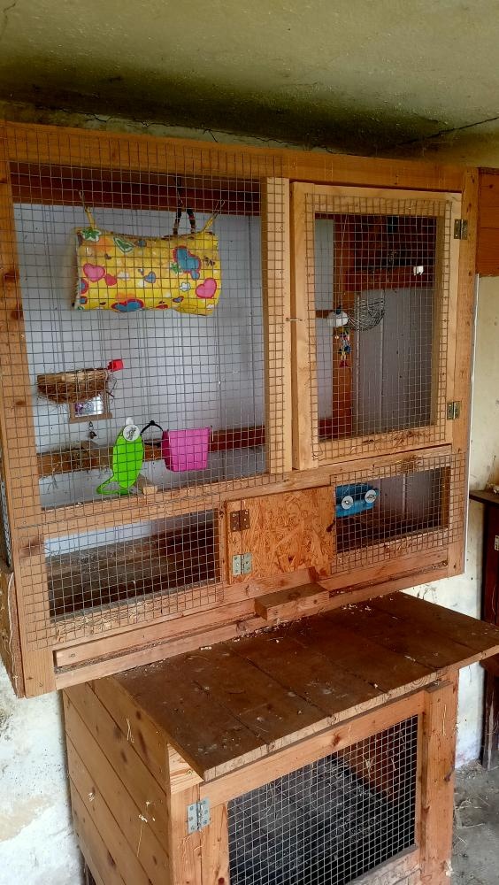 Nabízím za symbolickou cenu v celkem slušném stavu voliéru pro kanárky 100x100x40cm vybavenou.