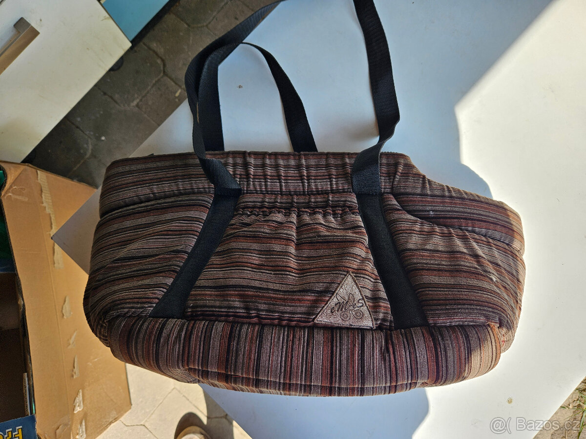 Prodám přenosnou tašku na malého psa (event. lze kočka apod, ale otvor na hlavu zvířete zůstává otevřen). Karabinka na spojení s obojkem součástí. Nosné uši do ruky i dost dlouhé přes rameno. Po 1 psovi. Rozměry viz. foto. Cena 150Kč. Pouze osobní předání. Po dohodě možné přivézt a předat Děčín, Ústí n/L, Č. Lípa, Litoměřice, Terezín, Roudnice n/L, Kralupy n/Vlt, Praha. Platné do smazání.