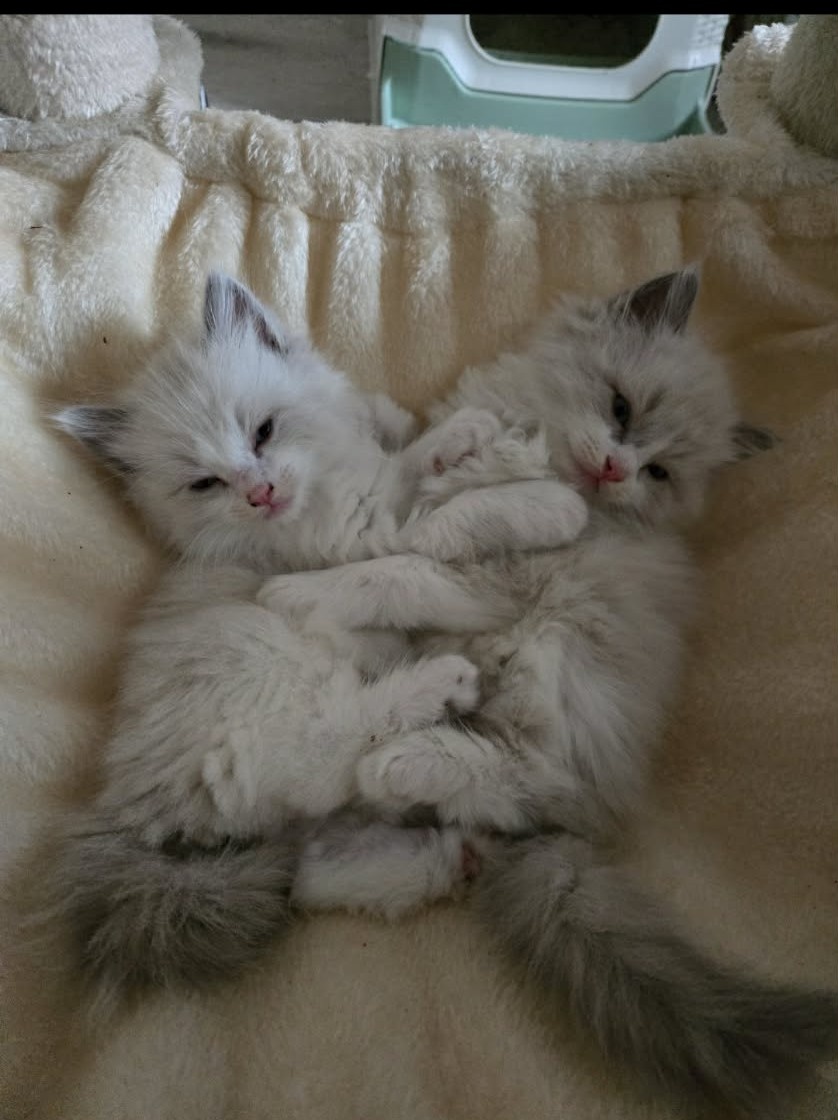 Kolko chlpatej lásky sa zmestí do jedneho kresla? vela:) prvé čo ma napadlo ked sme videli našich drobčekov ako sa už naučili čo je dobré všade su,naše ruky, nohy su pre nich hračky,ktoré treba vyskušať na 1000 sposobov:D ,všetko skumaju ale nič neničia je ich plný dom a to je to najdoležitejšie plný dom znamená vela radosti..mamina bicolor ocino blue lynx su krásni ragdollíci aj ked nemaju pp, takže malinké maju byť po kom ,velmi dobrých pováh,maju hygienické návyky, papkaju už samé,su pravidelne odčervované,čaká nas ešte očkovanie a ked príde ich čas možu ísť do nových rodiniek pre viac info telefonicky,whatssap 421911186362