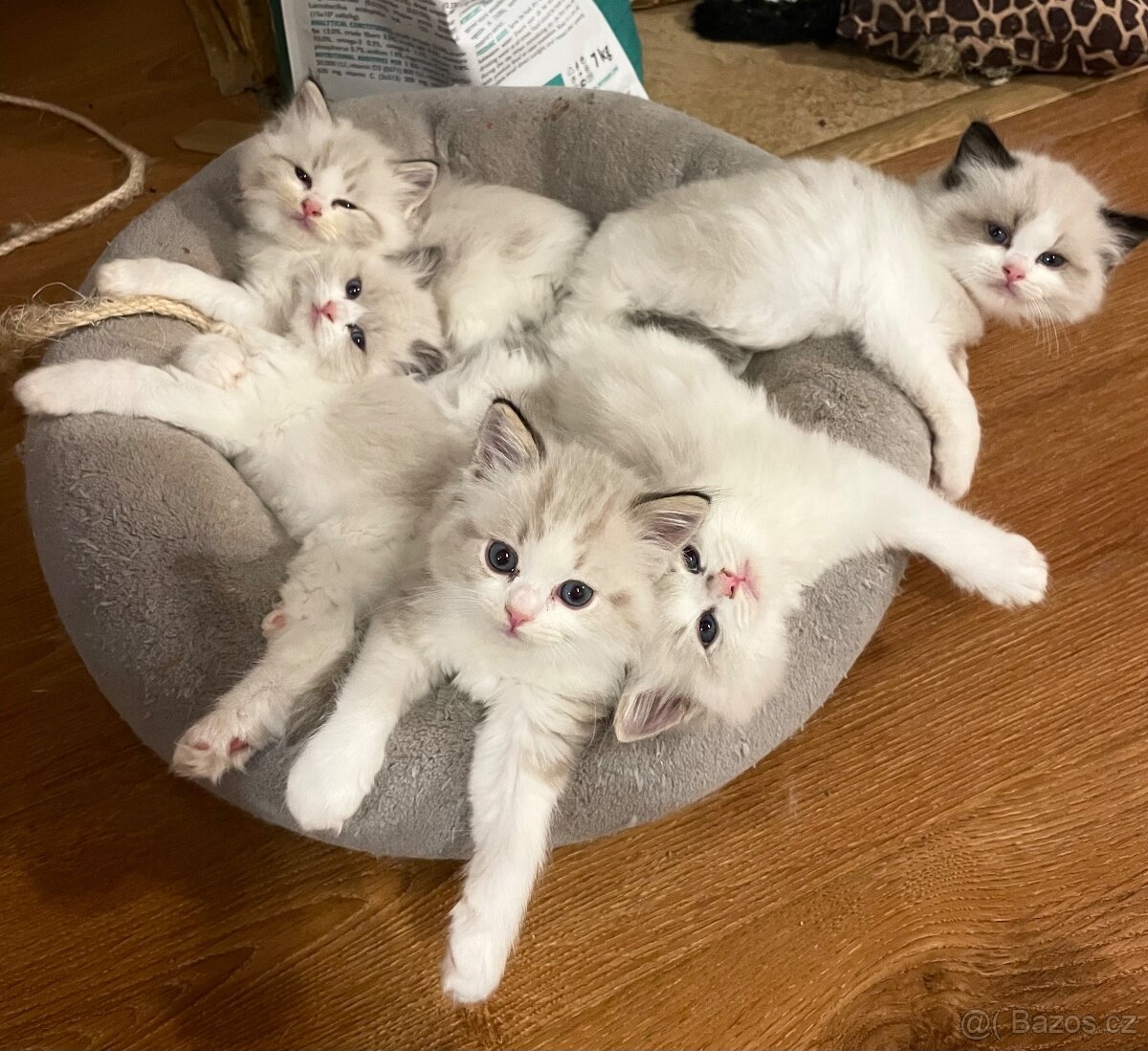 Hledáme milující domov pro našich 11 koťátek z chovné stanice White camellia. Jeden vrh narozený 30.10.2025 a druhý vrh 7.11.2025. Z prvního vrhu jsou 4 kočičky a z druhého 3 kocourci a 4 kočičky. Všechna koťátka jsou velmi mazlivá, společenská. Budou odcházet odčervená, očkovaná a čipovaná. Jsou v barvách seal bicolor, blue bicolor, seal lynx bicolor a blue lynx bicolor. Rodiče mají testy na genetické nemoce. K odběru nejdříve 1. a 2. týden v únoru 2026.
