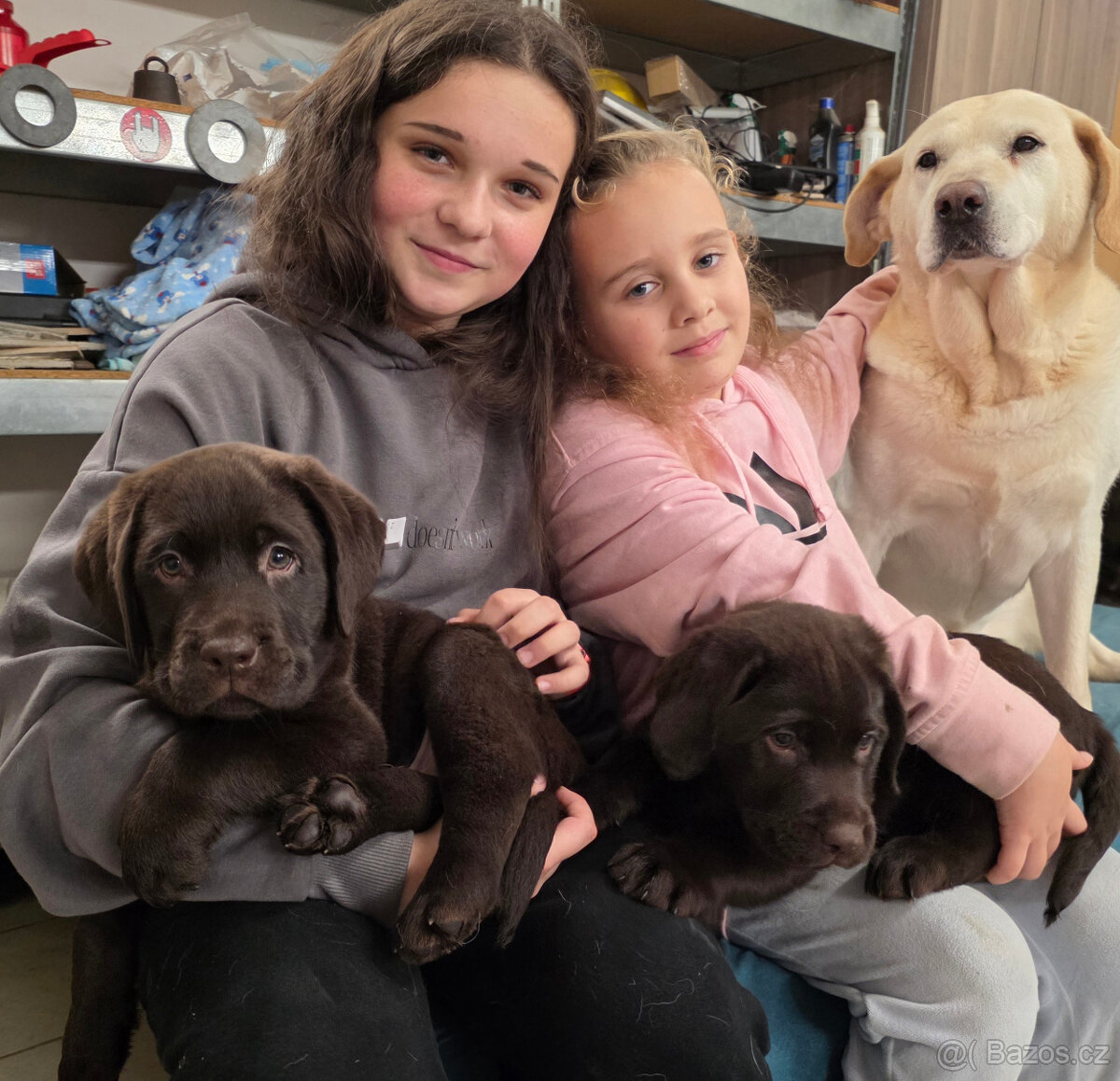 Čokoládová štěňátka 2x kluk 1x holka hledají milující rodinu štěňátka s PP . Matka Amálka z Hulínských obor otel Clark Rony Royal Glade DKK i DKL 0/0 oba veškerá vyšetření i genetika čistá. Štěnda jsou po pracovně i canisterapeuticky vedených rodičích, předpoklad super povahy i zdraví. Štěňátka jsou vymazlená zvyklá na psy, děti,kočky . Jsou 4x odčervená, očkovaná,čipovaná mají pas a PP. více info na tel. 777033988 Chlumec nad Cidlinou