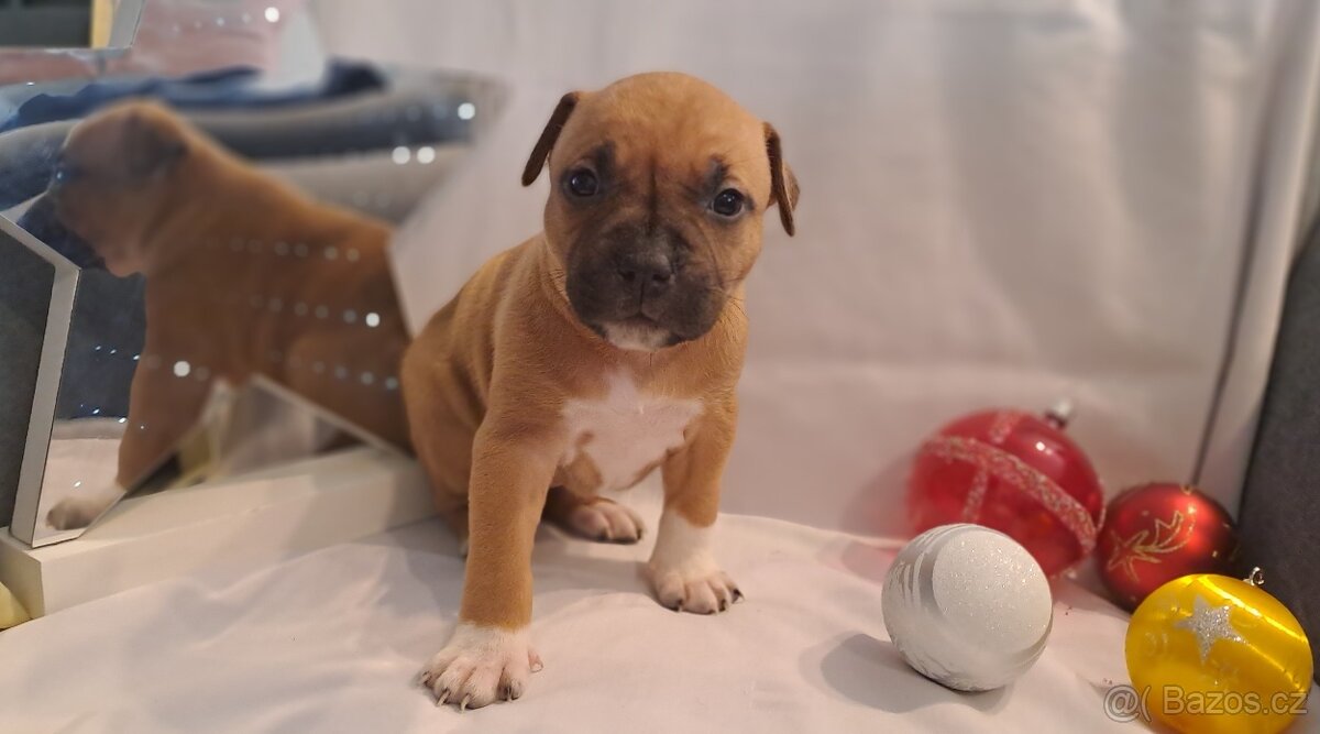Nabízíme k odběru 4 štěňátka am.staf.teriéra, a to 3 kluky a 1 holku. Jsou čistokrevná, socializovaná, vyrůstají v domácím prostředí s maximální péčí. Do nových domovů půjdou odčervená, očkovaná a čipovaná. Fotky rodičů jsou v příloze. Možnost odběru od 12.1.2026. Nutná rezervace.