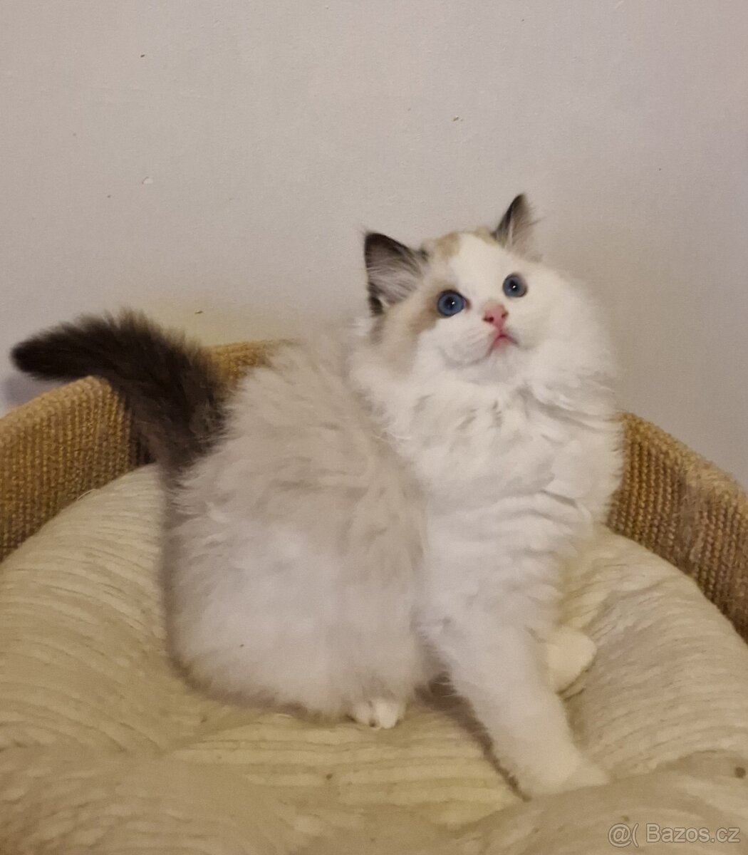 Kočička ragdoll seal bicolor čeká na své nové kamarády. Rodiče výstavně úspěšní, zdravotně negativně testovaní(HCM,PKD,FeLV,FIV). Kočička je zdravá kastrovaná, čipovaná, odčervená, socializovaná.
