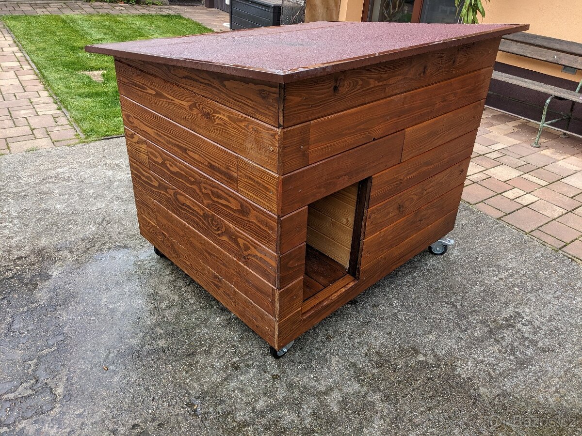 Prodám novou boudu z poctivého dřeva s předsíňkou pro psa, která zvládne i velké psy. Odklopná střecha pod kterou je ještě zateplené vnitřní víko. Vnitřek ošetřen nezávadným olej, vnější nátěr lazurou. V ceně jsou kolečka pro případnou manipulaci.