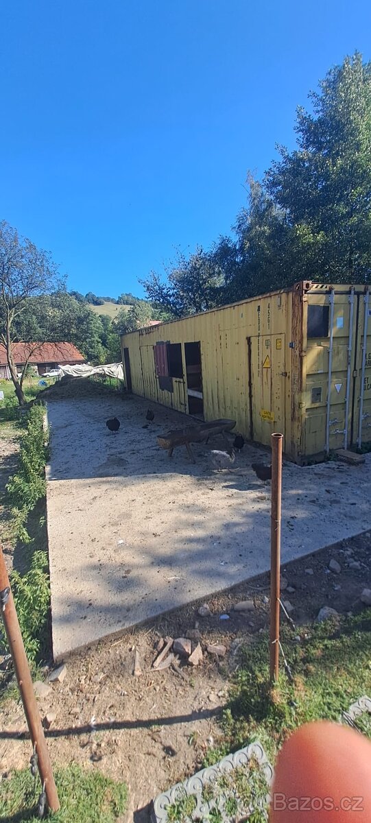 Prodám upravený lodní kontejner - udělané rozvody vody včetně odporového drátu a elektřiny. Rozdělený na 4 sekce, první sloužila jako dojírna, do jedné se pak vleze celý kulatý balík. Cena použitého lodního kontejneru je 90 tis, za tuto cenu prodám dál i s úpravami a vším, co je na fotkách. Nutné si zařídit odvoz - na naložení autojeřáb (ten můžeme zajistit), na kratší vzdálenost traktor, na delší návěs. Kontejner se položí na vybetonované patky. My jsme si vybetonovali i prostor okolo, ale není nutné. Postavíte a zvířate hned bydlí, máme pod stromy a v létě tam není horko.