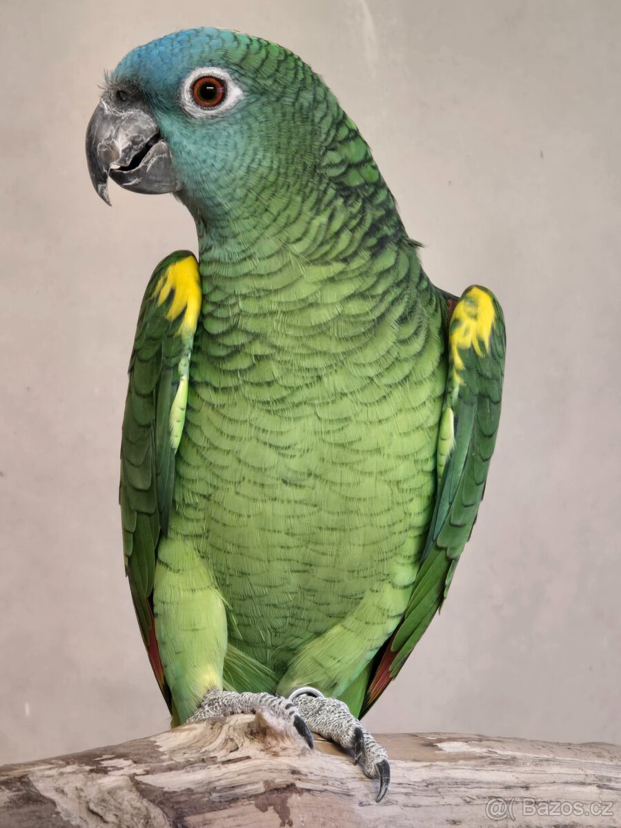 Prodám samici amazoňan modročelí 2x čistá šňůrka stáří 7let, nesoulad se samcem