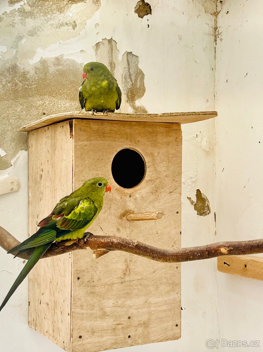 Prodám letošní mladé papouška horského. Venkovní voliéra, zvyklí na pohyb lidí.
