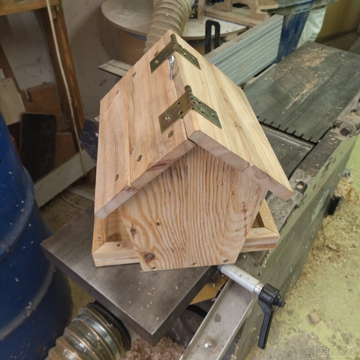 Prodám krmítko z tvrdého dřeva se zásobníkem krmiva s průzorem naplnění z plexiskla. Háček na zavěšení. Nelakováno. K dispozici i verze dřevěné se střechou z voděodolné překližky a celé z voděodolné překližky.