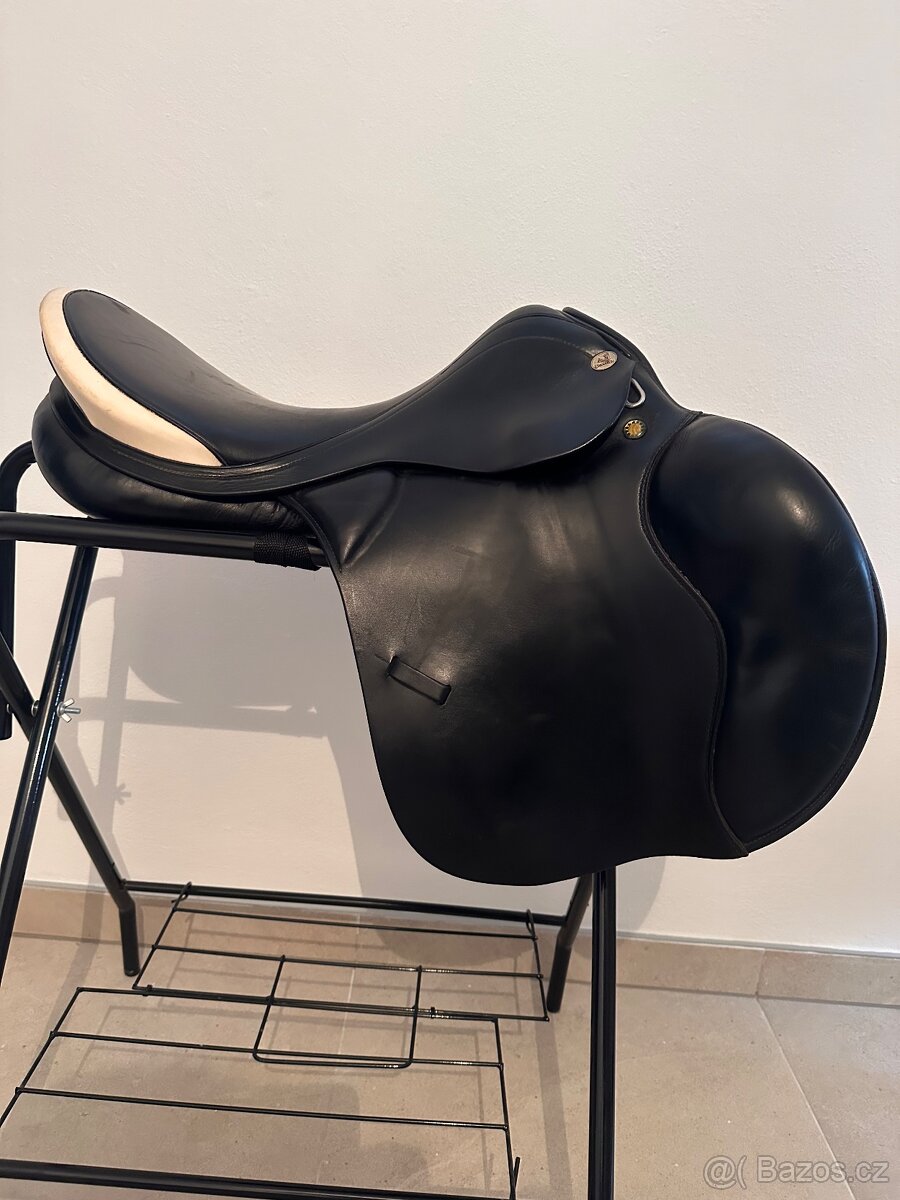 Predám obľúbené všestranne / skokové sedlo Prestige Venezia. O sedlo bolo pravdielne starané, koža je mäkká. Sedlo nesie znamky používania, avšak nie je nikde roztrhané ani nemá vady, ktoré by bránili používaniu. Vankúše sú na vlne, takze sa dajú upraviť podľa potreby. Komora 33, posedlie 18 (posedlie sedi ako 17,5 u Kentaurov) rozmery na foto.