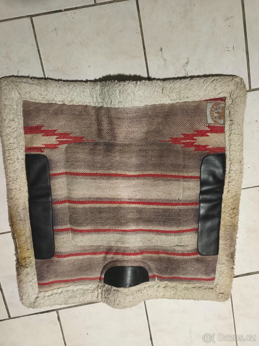 Prodám westernovou deku. Koupila jsem tady na bazaru, od té doby použitá jednou, ale kvůli přechodu na anglické sedlo nevyužiji. Cca 80x76, tloušťka cca 4,5 cm. Před odesláním ještě vyčistím.