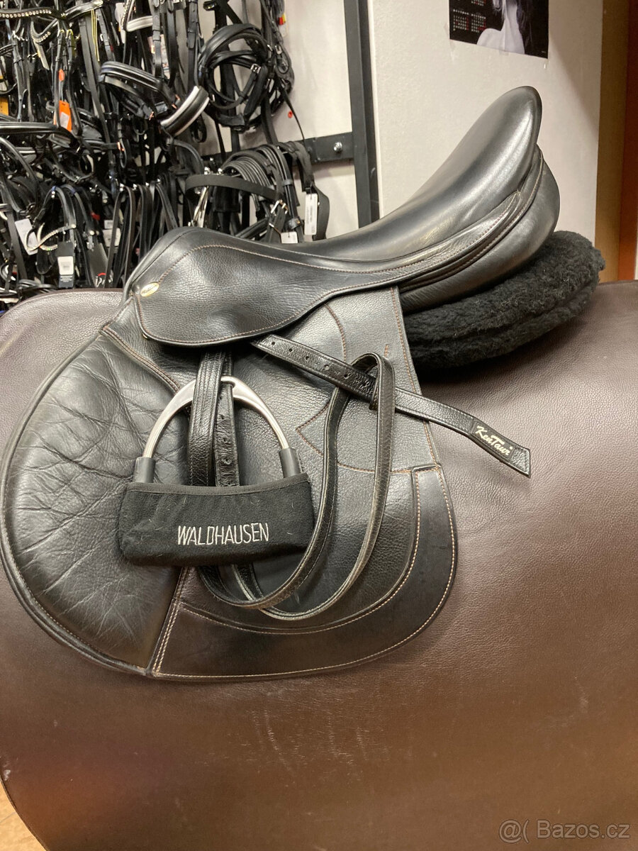 Kentaur Naxos 17,5/2 - [4.1. 2026]Prodám skokové sedlo Kentaur Naxos na vlněných polštářích. Velikost komory 2, posedlí 17,5. Sedlo nese běžné známky používání, jedná se pouze o estetické vady (viz foto).