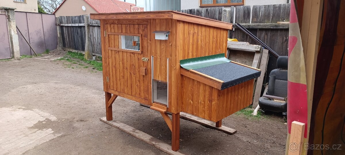 Kurník s rozměry 160/110/150 cm (v/š/d) měřeno bez snůškové části 50 cm, je určen pro cca 10 slepic.