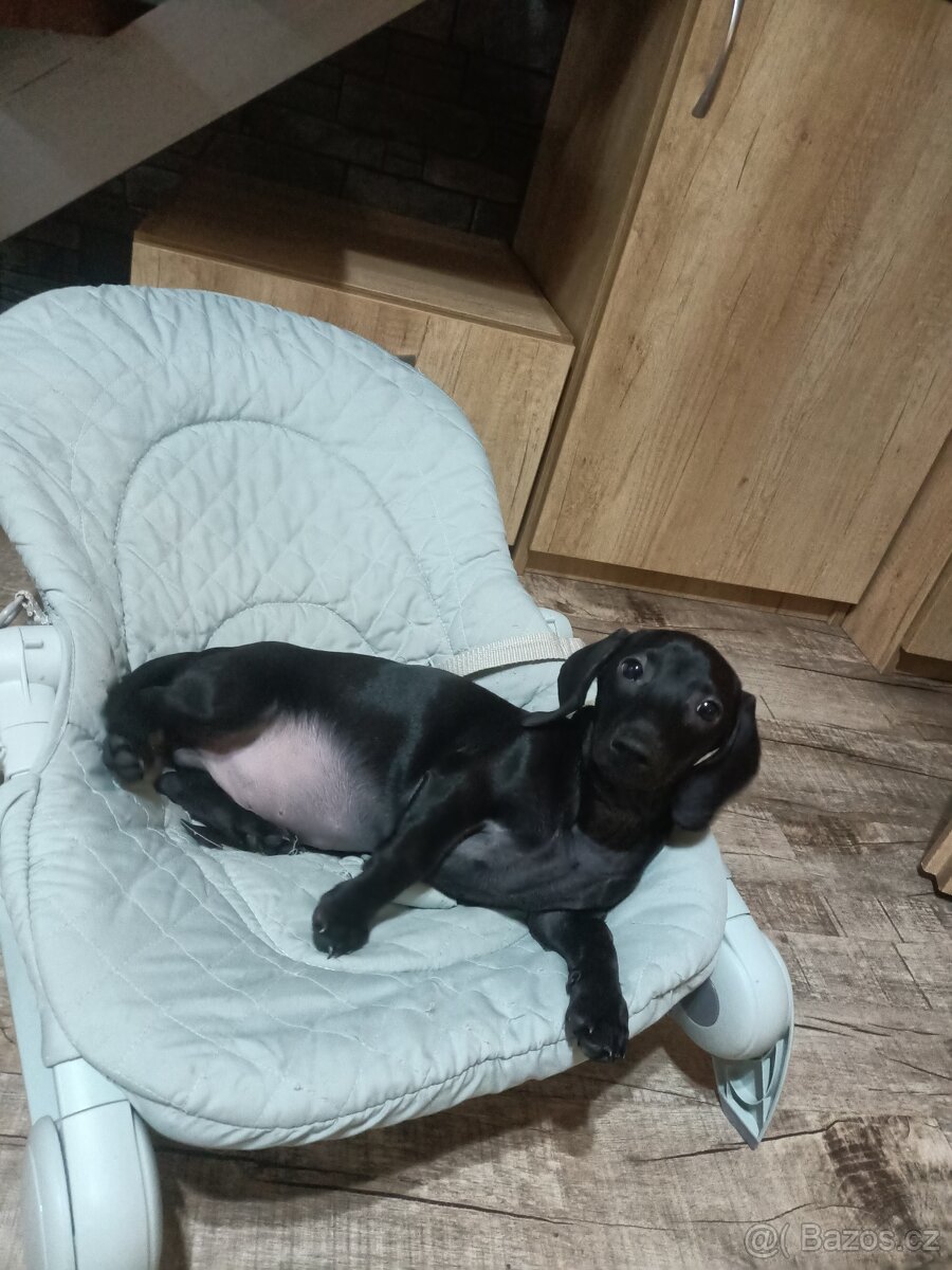 Trpasličí jezevčík hladkosrstý - TOP - [19.2. 2026]Bohužel z důvodu těžké a neřešitelné alergie musíme prodat štěňátko trpasličího jezevčíka, narozený 30.11.2025,odčerveny, očkovaný prvním očkováním. Na začátku března je potřeba druhé očkování a očipování. Prosíme jenom do dobrých rukou, štěňátko je ...