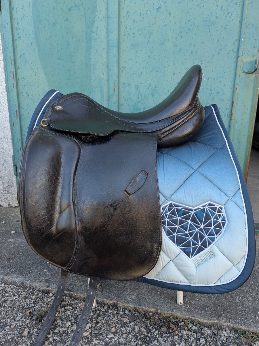 Prodám drezurní sedlo Euroriding Achat na kulatého koně. Posedlí 17" komora 31 odpovídá 2-3 komoře. Sedlo je vhodné pro koně kteří potřebují komoru tvaru U. Pohodlné a neomezujíci pro jezdce. Má krátké polštáře proto je vhodné i pro koně s krátkým hřbetem, kteří normálně mohou mít maximálně posedlí 16,5 například.