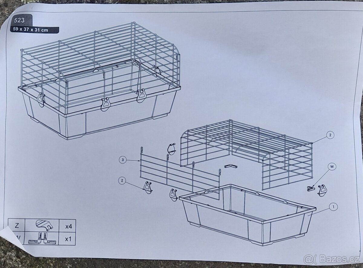Prodám novou klec na většího hlodavce za 550 Kč. Velikost 59x37x31 cm. Pouze místo dvou původních plastových zacvakávacích držáků jsou dva kovové
