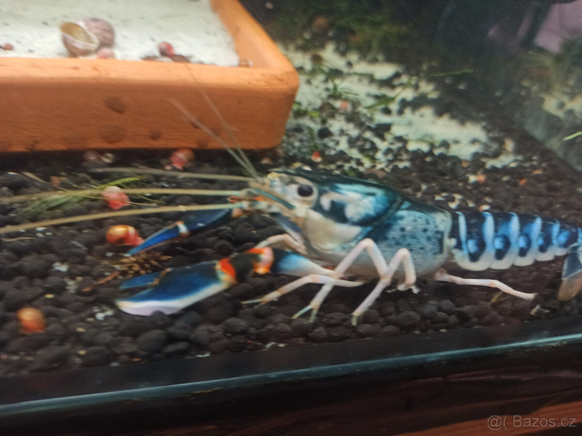 Cherax Peacock samec. Jedná se o jednoho z nejkrásnějších barevných raků z Papuy. Velikost cca 14 cm, tento druh se dožívá 5 - 8 let.