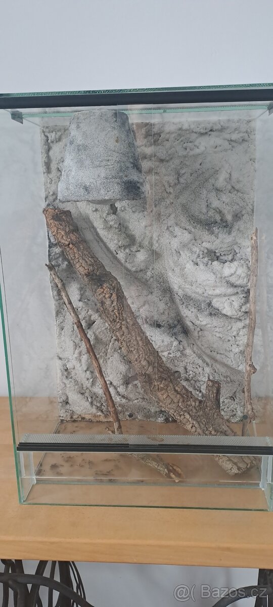 Nabízím terárium 40x30x60 cm včetně pozadí a tepelné žárovky