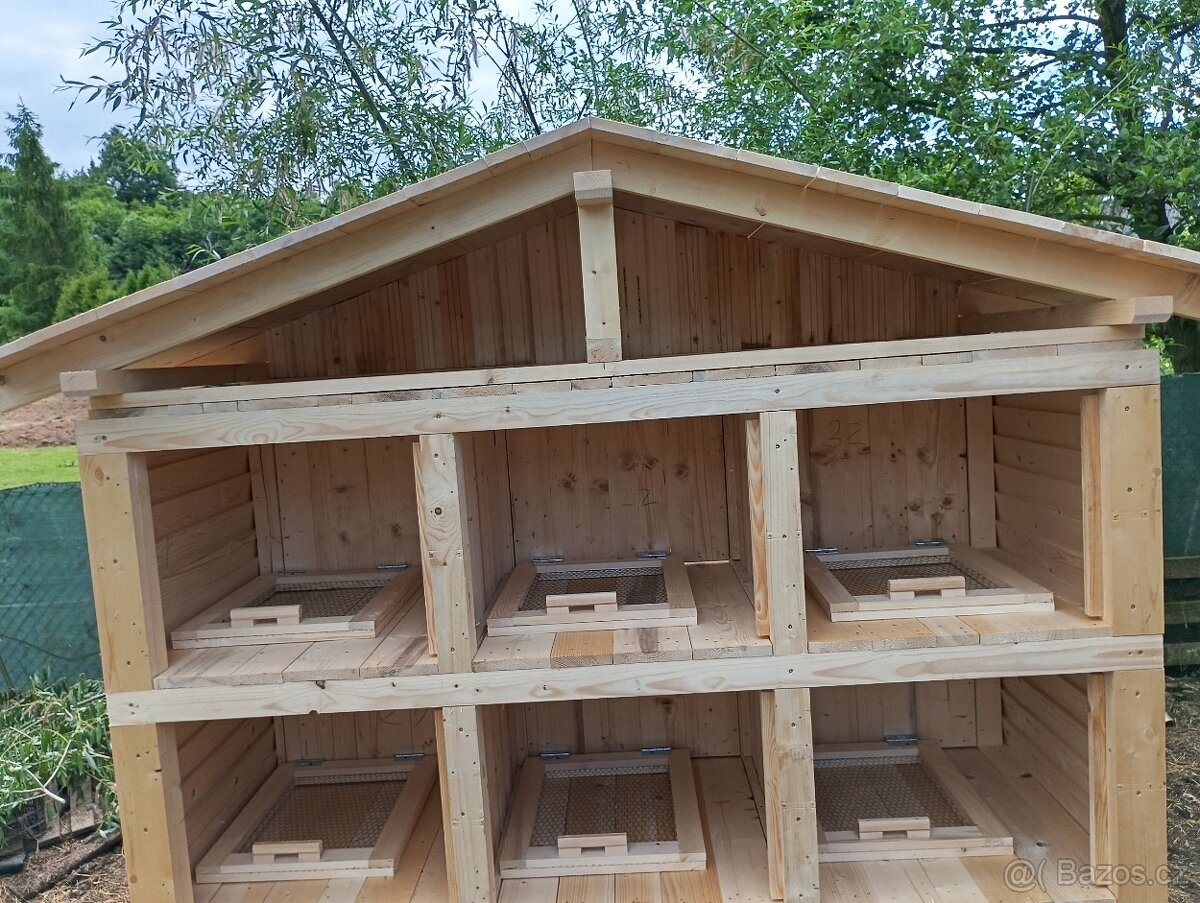 Prodáváme králíkárny se 6-ti a í ti kotci, forma dodání skládačka, sešroubujete podle návodu, je možná i montáž, cena bez montáže za kotců je 15.000 korun. Velmi jednoduchá montáž, odvezete na vozíku za autem. Najdete nás na FCB Truhlářství Polák