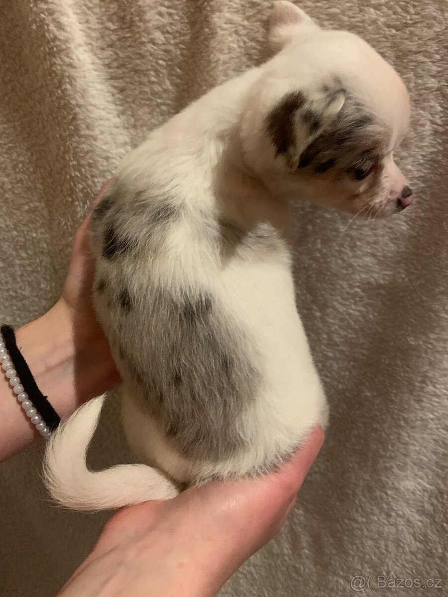Čivava - kluk lila, bílá - [9.2. 2026]Stěňátka čivavy z veterinárně kontrolovaného vrhu. Jsou očkovaná, odčervená, cipovaná, naučena čistotě....chodi na plenku. Pejsek od 11 tis. Jsou připraveni do noveho domova.