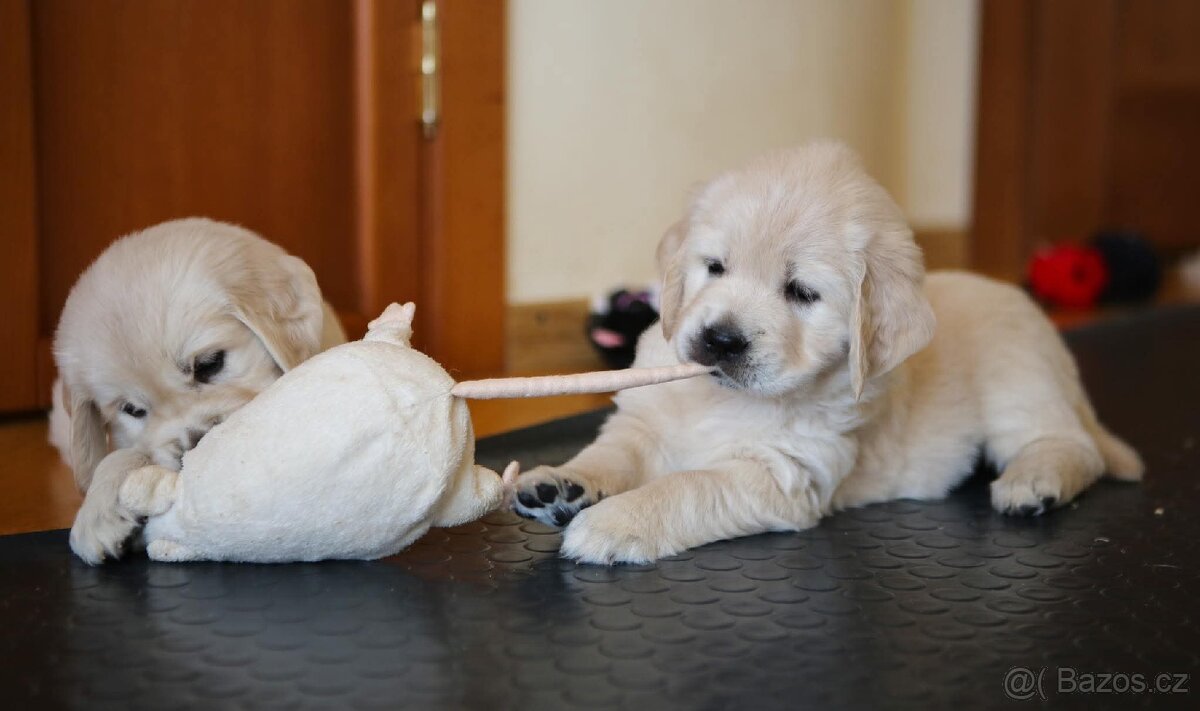 Od 13.2.2025 nabízím k prodeji krémovo - světlá štěňata zlatého retrívra. Štěňatům je momentálně osm týdnů,maminka štěňátek samozřejmě u nás k vidění. Volné jsou dvě holčičky a dva kluci. Očkovaná, odčervená a čipovaná štěňata jsou.
