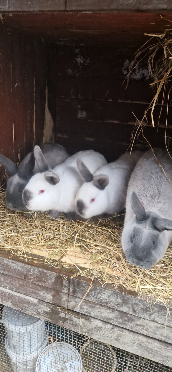 Prodám čistokrevné králíky. 1 samice Kuní velká modrá a 4 samce Kalifonský modrý a Kuní veký modrý.