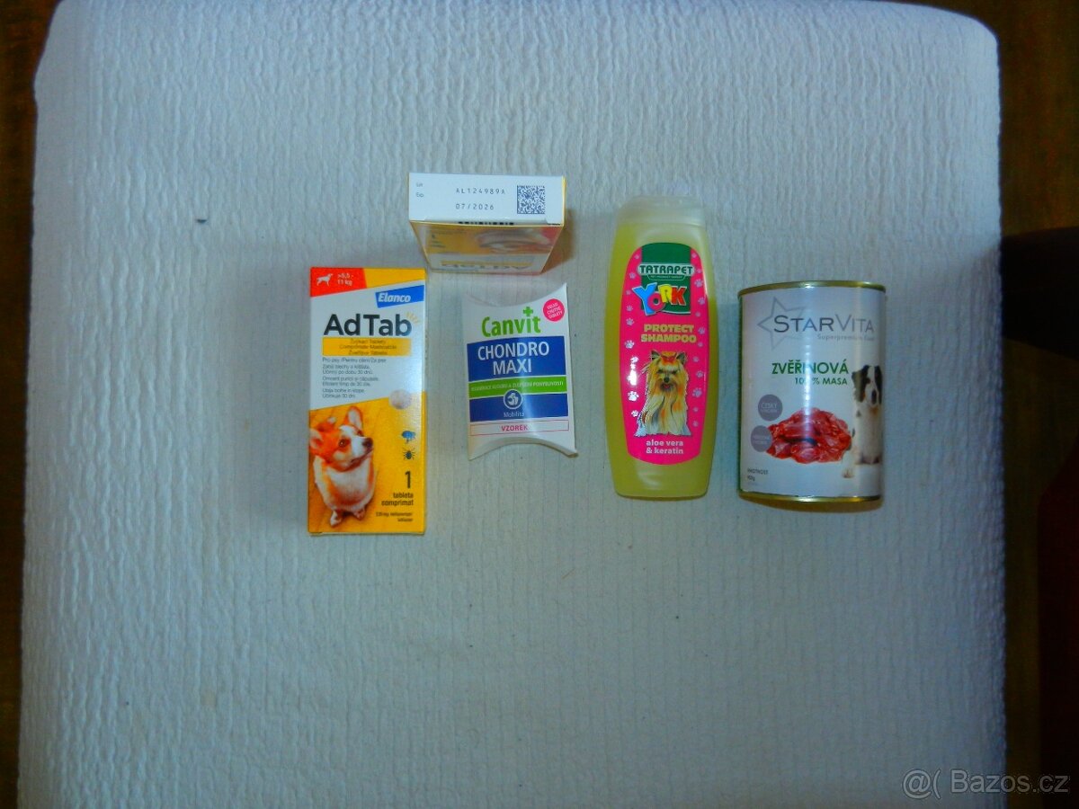 Prodám 2 ks balení žvýkací tablety pro psy, condro maxi + zvěřinová konzerva+ šampon pro psy s aloe vera + kreatin Zemřel pes tak prodává s velkou slevou včetně dopravy při platbě předem