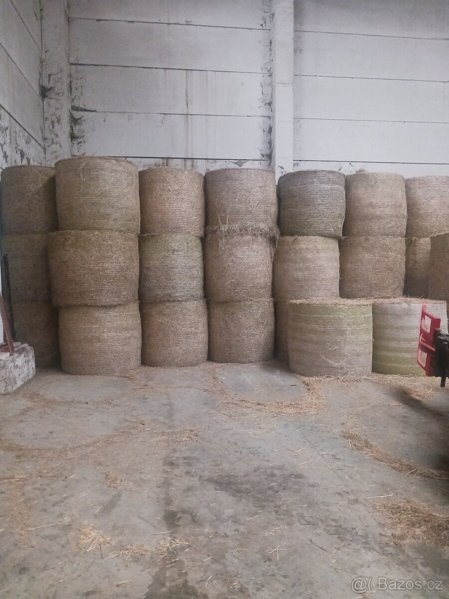 Prodám uskladněné loňské seno. 30 balíků. Průměr 130cm. Cena 750Kč.Kostelec nad Černými lesy