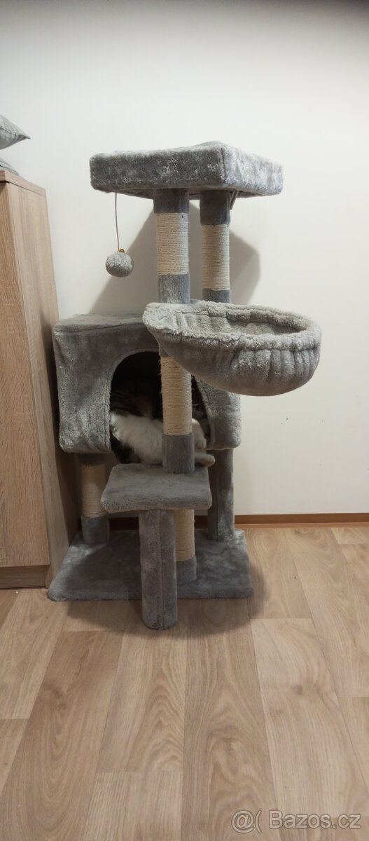 ✔️ Má domeček, poličky a škrabací sloupky