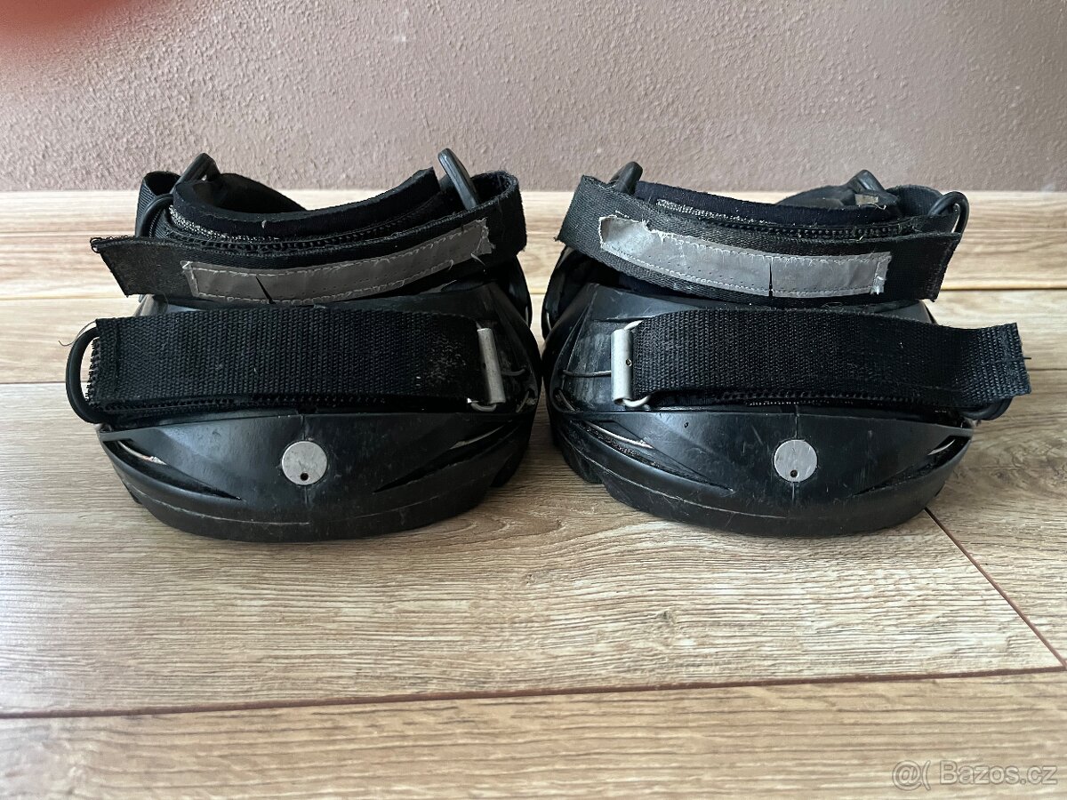 Byly používané jen na jednoho koně, který měl hodně rekreační režim (jen procházky a sem tam pomalé vyjížďky). Kůň byl později nakován na plastové podkovy a botičky už nepotřeboval. Bo ...