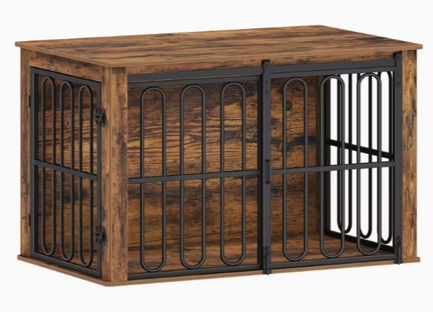 Dřevěná klec pro psy, 100cm domácí kotec, dvojité dvoukřídlé posuvné vrátka vhodný i středně velké plemena, s pevným bočním stolem 60 × 100× 62,4 cm hnedý odstín. Nábízím moderní řešení: funkcionální a elegantní košíky z masivního dreva pre vašeho mazlíčníkovi. Idealně jako interiérovy.