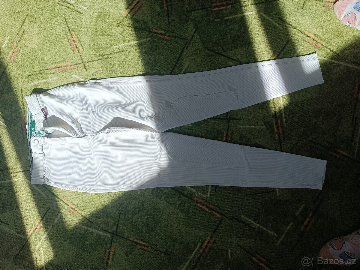 Závodní bílé rajtky Jacey vel.34/36 - [16.2. 2026]Rozměry: pas 32cm - natažený 34cm, délka 104cm od rozkroku dolů 78cm