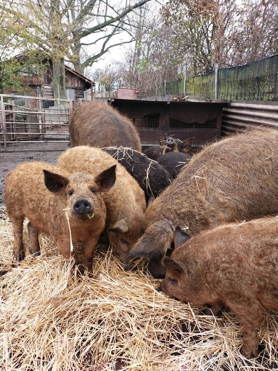 Nabízíme dvě odrostlejší čistokrevná selata mangalice po velkých rodičích, váha cca 50kg. Vepřik a svinka. K dispozici také odstavena dvouměsíční selata-kus za 3000.