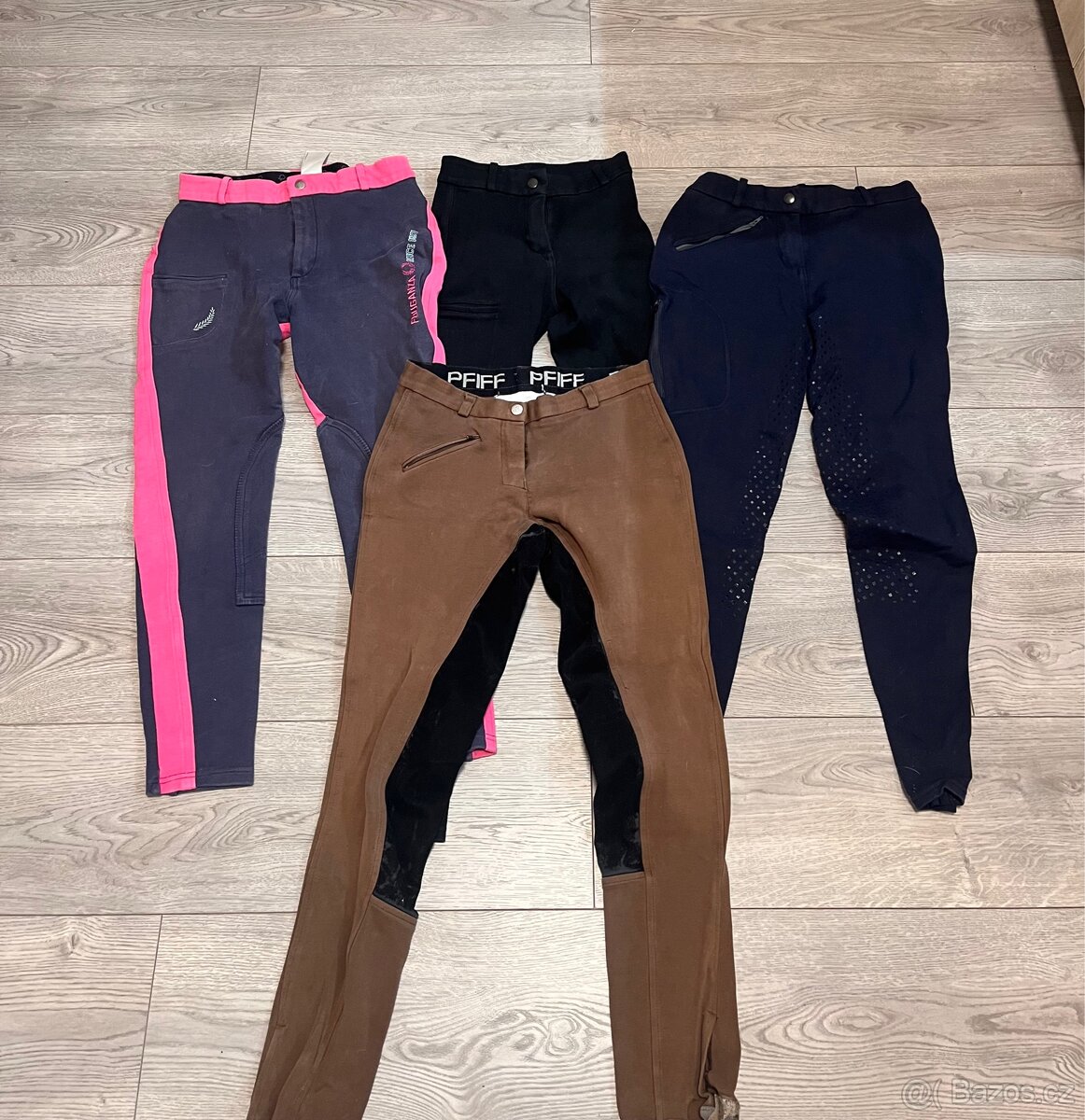 Rajtky jezdecké kalhoty dětské vel. 128 a 146 - [1.2. 2026]Prodám dětské rajtky + 5 x trička s koňskou tematikou, 1x na tričku pes vel. triček 152- 164