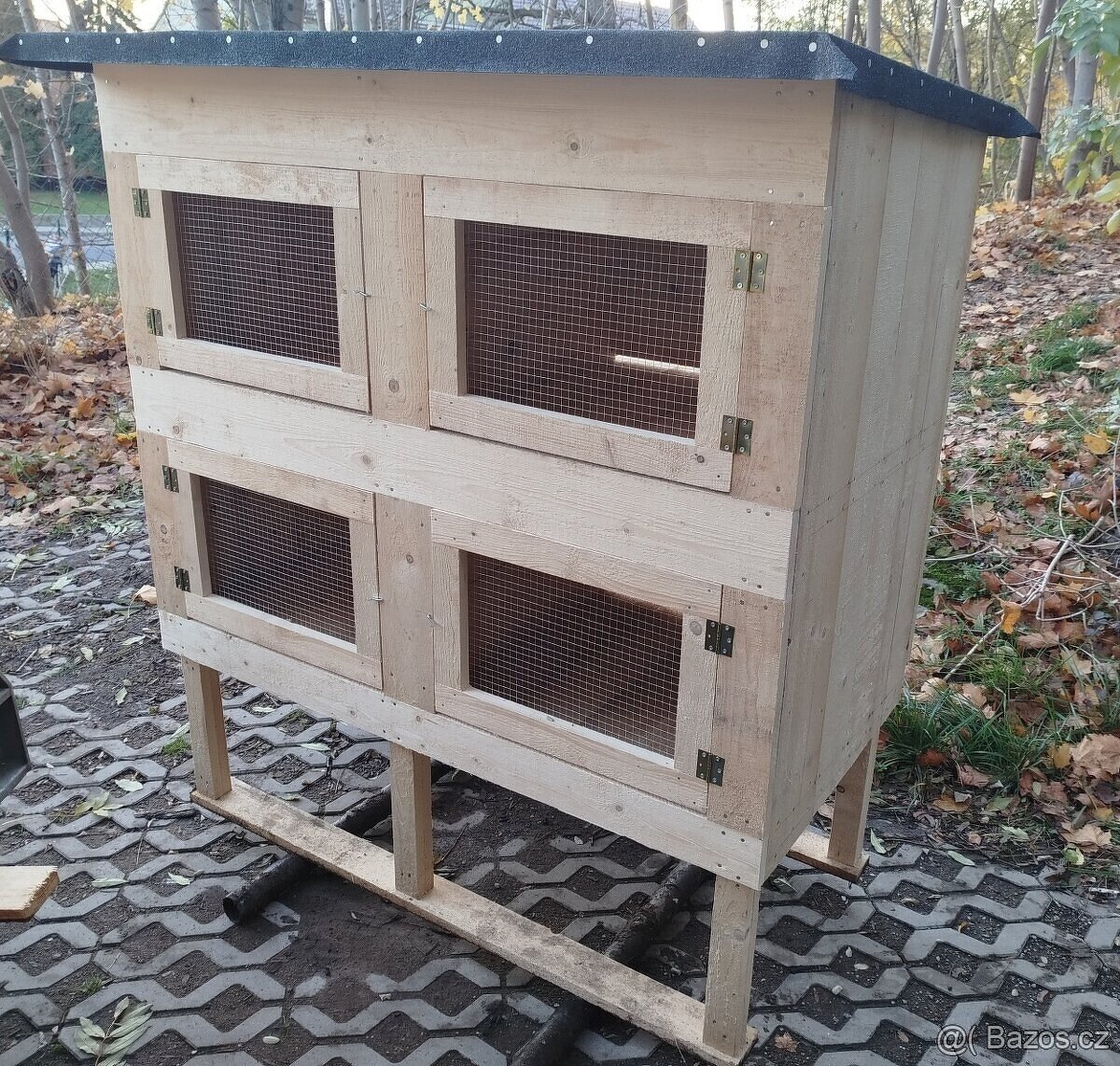 Králikarna čtyřkotcová velká - [28.12. 2025]Prodám novou nepoužitou čtyřkotcovou králíkarnu o rozměru 170cm x 85cm x 160cm, (délka x hloubka x výška), která je vyrobena z masivu. Rozměr kotce 80cm délka, 80cm hloubka a 50cm výška. Vhodná př. Pro kalifornské kraliky atd. Podlahy i střecha šikmá ...