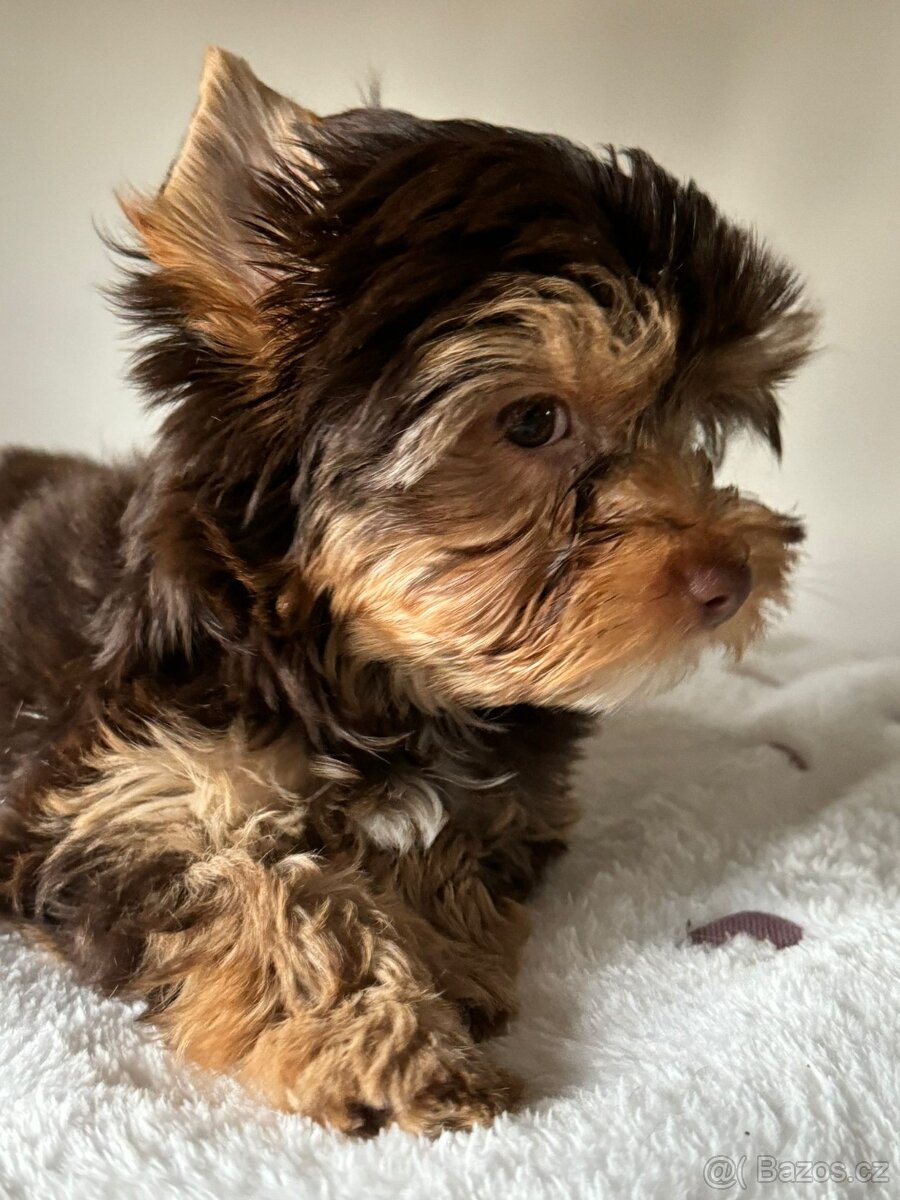 Prodám krásná štěňátka barevného Jorkširského Teriéra s pp, barva čokolada,čoko s pálením a white choco