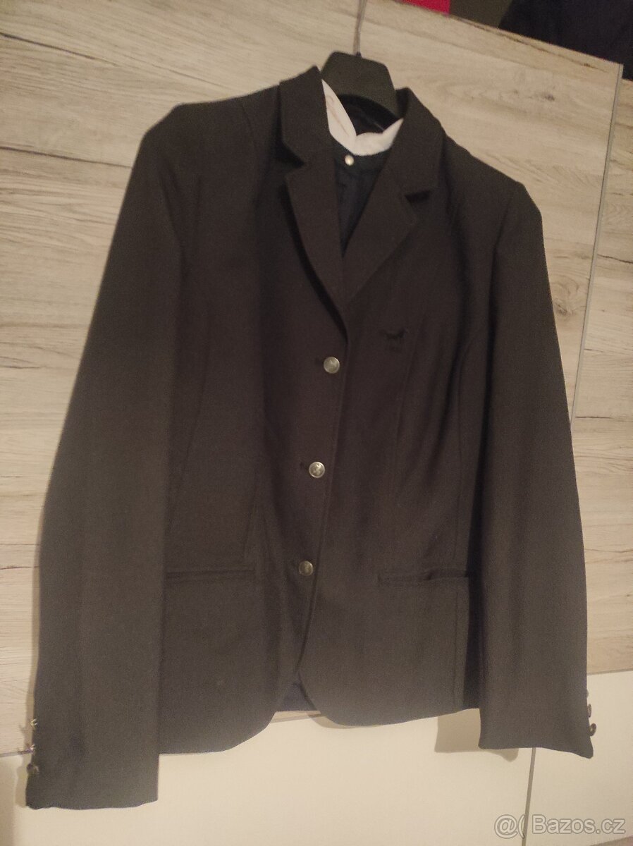 Prodám dámské jezdecké závodní sako . Nové pouze vyzkoušené . Velikost xxl Černé barvy .značka HKM. Dvojitý rozparek.