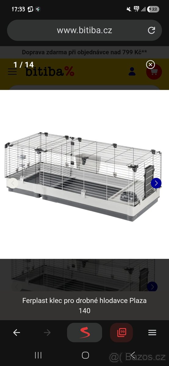 Ferplast klec pro morče 78 x 48 x 65cm - [8.2. 2026]Prodám klec Ferplast pro morčata o rozměrech 78x48x65cm. Používaná, ale stále hezká bez vad. V ceně vše co je na fotce - domeček, toaleta, pelíšky, mističky, napaječka, seník. Osobní odběr Praha 8 Čimice.
