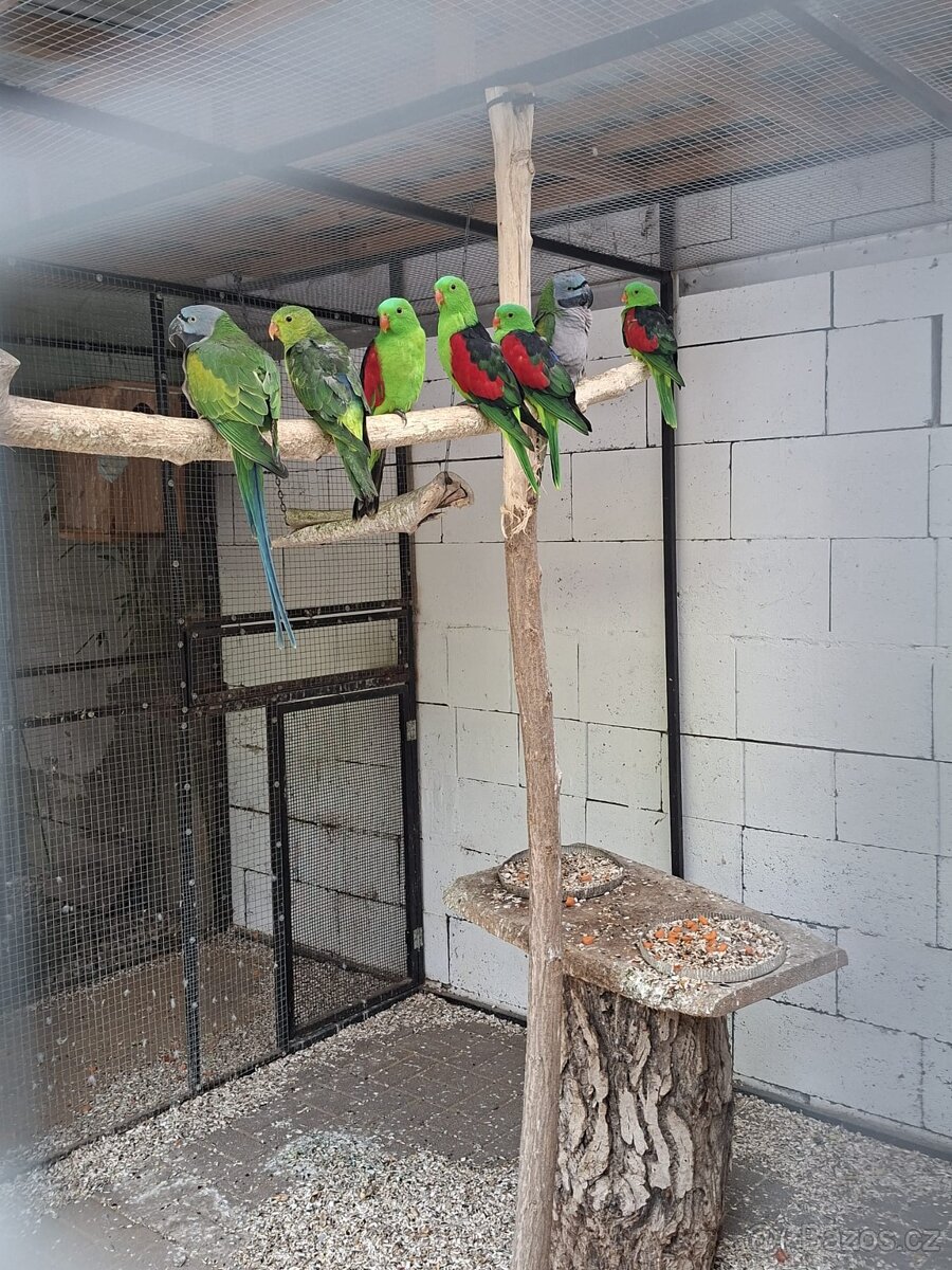 Papoušek Červenokřídlý 2-3 roky, samci i samice, cena 1500kč/ks.