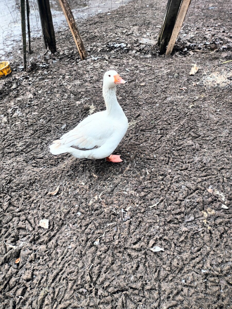 Prodám husu stáří necelý 1 rok.Kříženec pomořanského a německé bíle brojlerové husy.cena 1000 kč