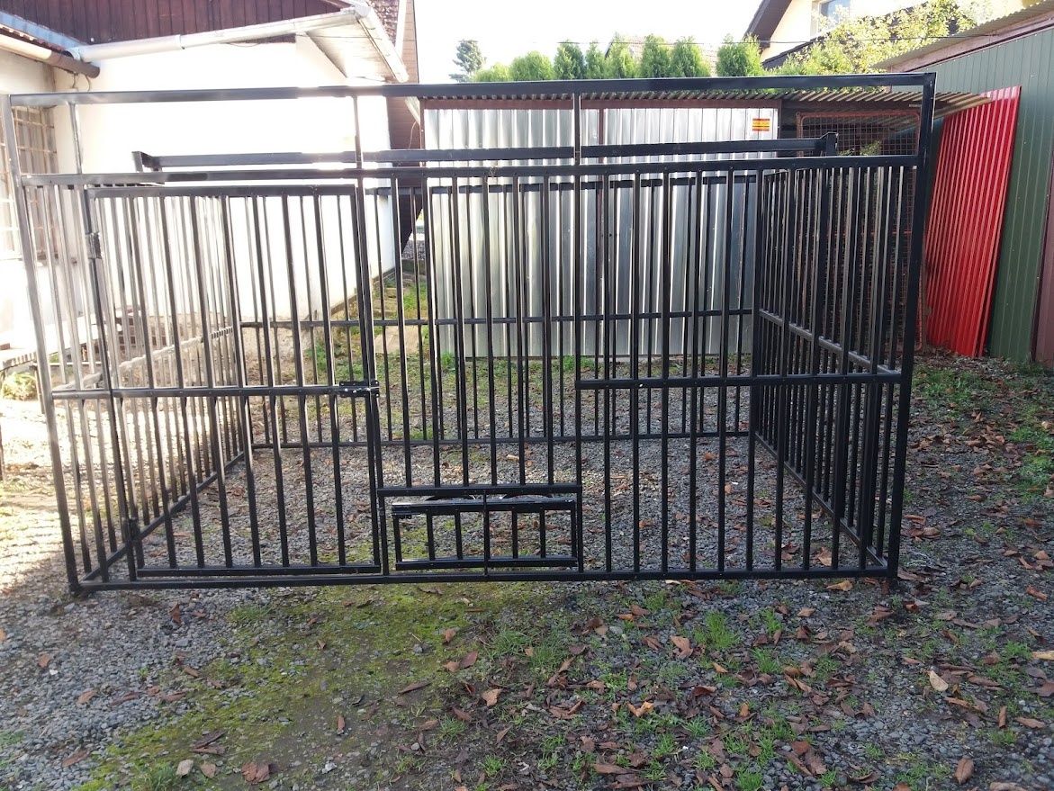 Prodám kotec pro psa o rozměru š. 3 x d. 2 m s pevnou masivní konstrukcí. Mříže jsou z jeklu 2 x 2 cm. Rozteč mezi mřížemi 9 cm. Umístění dvířek na levé straně. Rozměr dvířek š.88 x v. 137 cm. Otočné krmítko + dvě misky. Konstrukce má nástřik černé barvy na některých místech jsou škrábance. Kotec nebyl použitý a je včetně krytiny a spojovacího materiálu. Váha kotce kolem 200 kg. Pouze vlastní odvoz z Jablůnky u Vsetína.