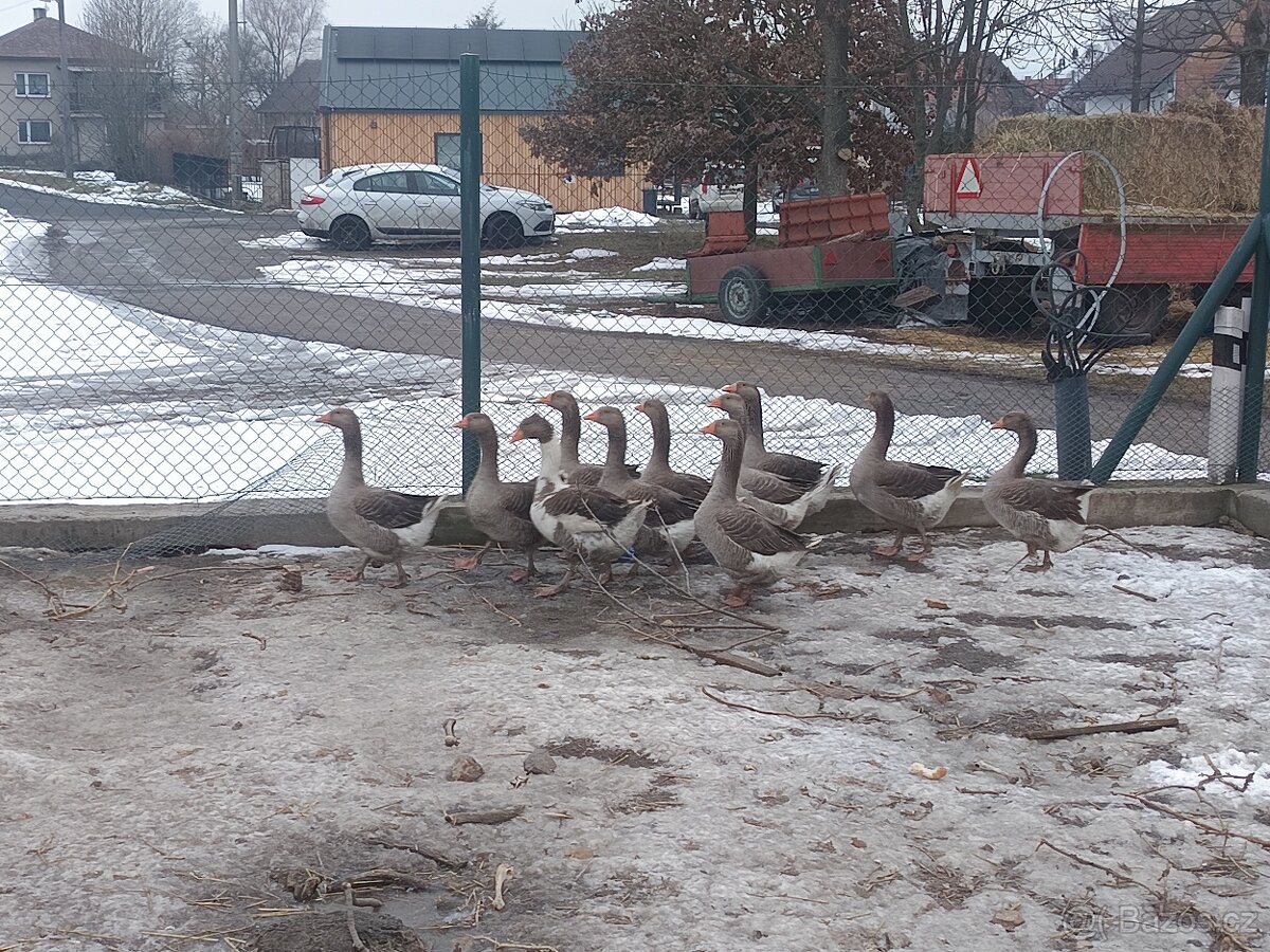 Husy - [10.2. 2026]Prodám husy do chovu. 3 husy + houser. Vysedí a odvodí housata. Dále prodám půlroční husy na zabití nebo do chovu 5ks.