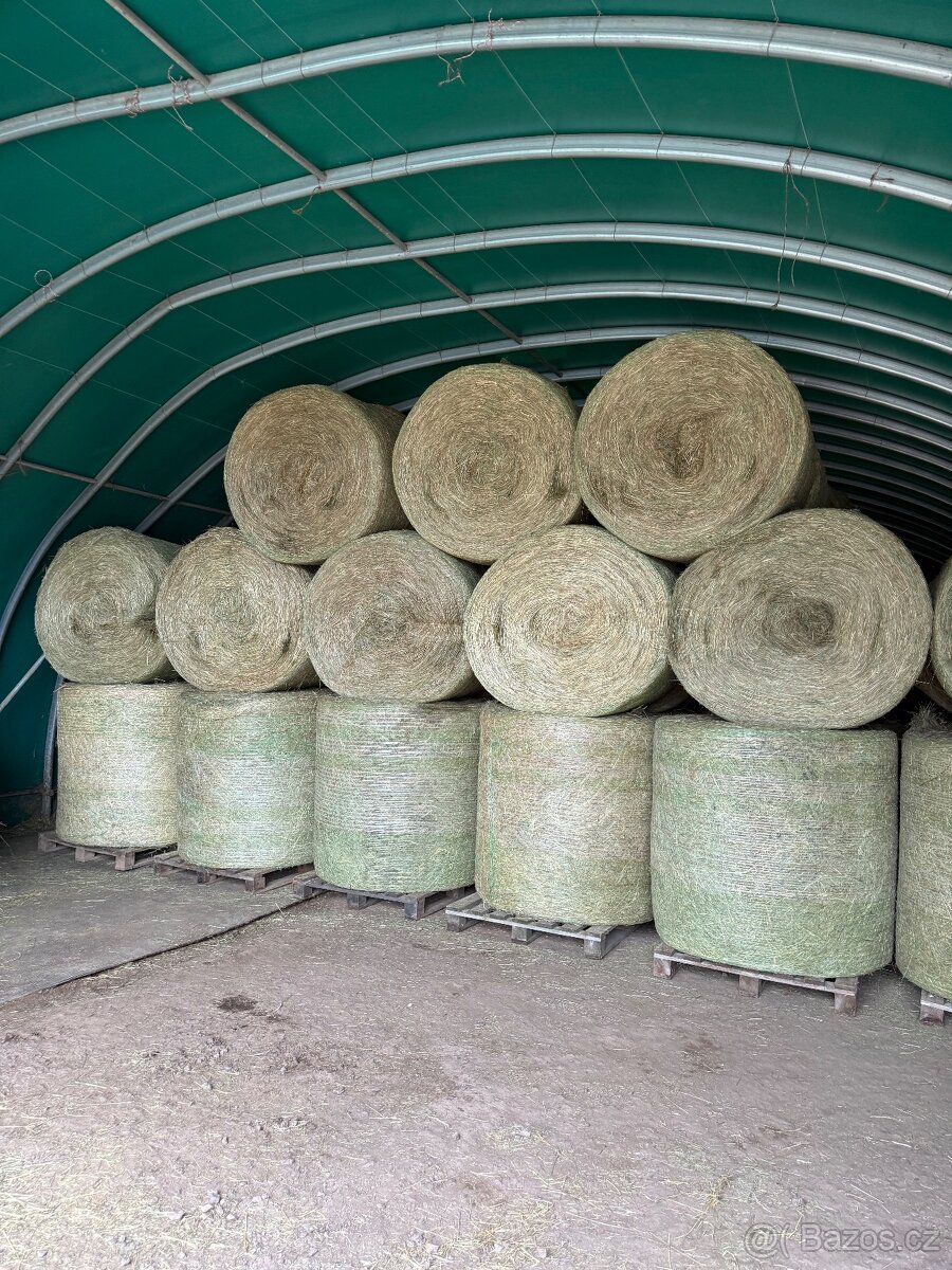 Prodám seno, velké kulaté balíky cca 130cm, kvalitní, uskladněné v hale na paletách. Sjezd D5 Cerhovice-Kařez.