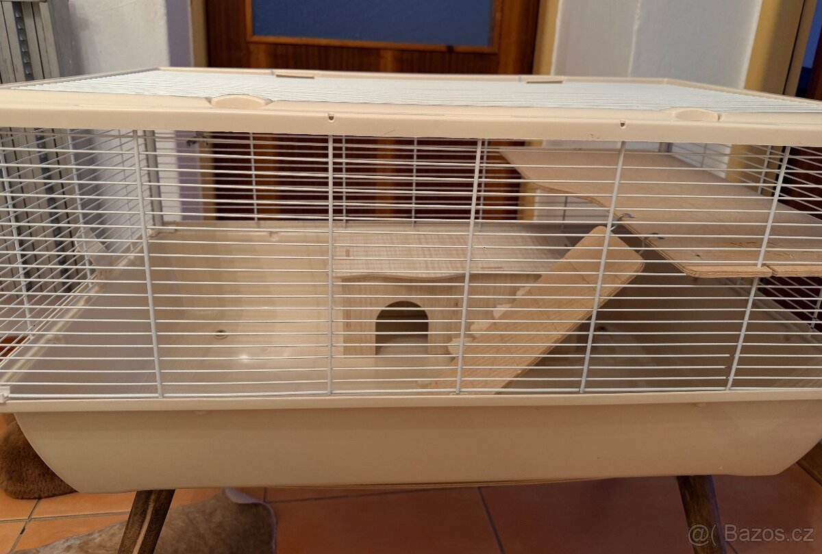 Prodám klec po syrském křečkovi, používanou cca 6 měsíců. Klec je plně funkční, běžné známky používání.