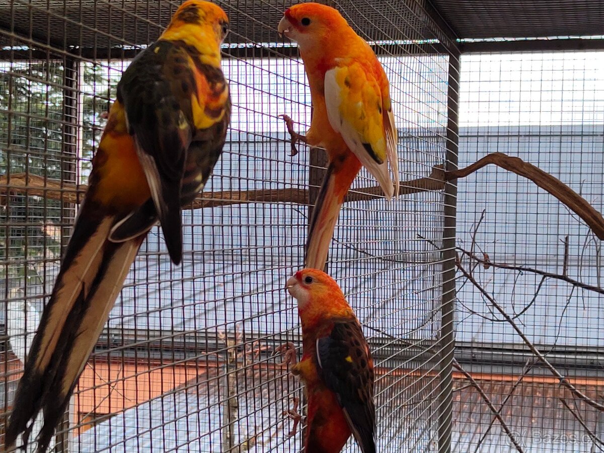 prodám rosela Pennantova tříbarevná straka - pomeranč. Samci i samičky rok 2025.